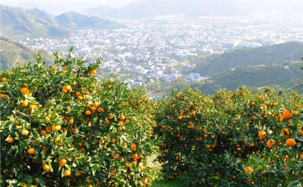 有田川が流れる左右の山や、海岸沿いの山々にみかん畑が広がります。