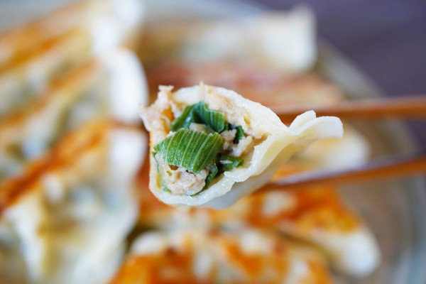 京野菜九条ねぎを使った京風ぎょうざは、京都のお醤油、京都の一味、そして京都の日本酒で味付け。