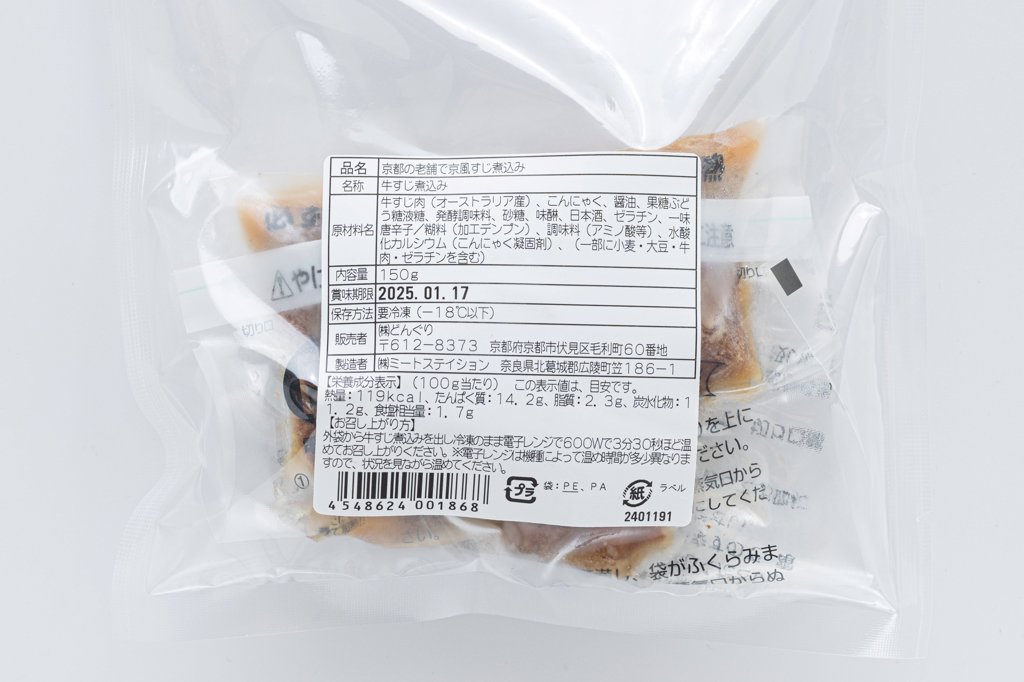 オーストラリア産の牛すじ肉を京都 澤井醤油本店の濃口醬油・佐々木酒造の日本酒・清水産寧坂七味家の一味でじっくり煮込みやわらかく仕上げました。