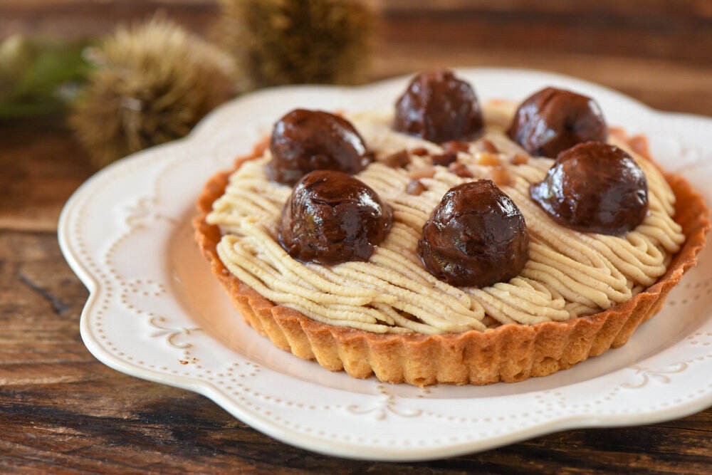 愛媛県西予市城川町の希少な和栗を主役にした、栗の風味を存分に楽しめる贅沢なタルト。