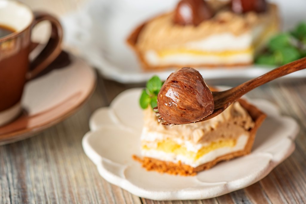 低温熟成させた栗を丁寧にペーストし、甘みとコクを引き出した濃厚なモンブランクリームに仕立てました。