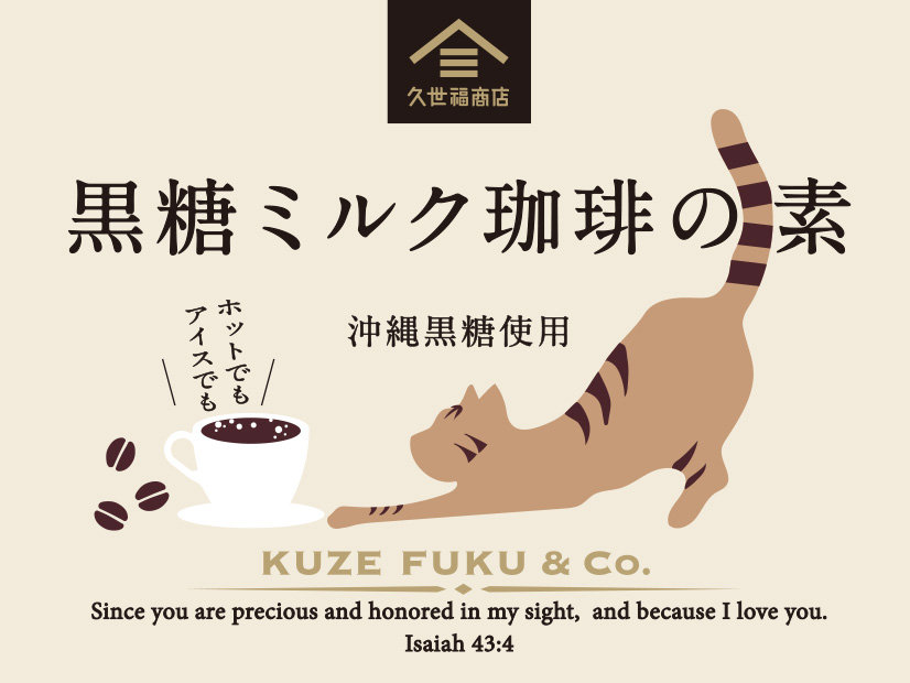 沖縄黒糖のまろやかな甘みと、コーヒーのほろ苦さ・香ばしさが重なり、隠し味の塩こうじによってやさしくまとまった味わいに仕上げました。
