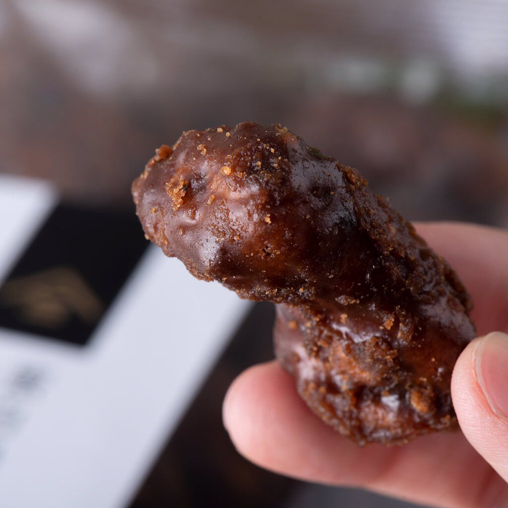 沖縄県産黒糖を100%使用した、久世福こだわりのかりんとう。米油で丁寧に三度揚げし、カリッと香ばしい食感に仕上げました。蜜は二度掛けで濃厚な甘みと黒糖の豊かな香りが広がります。