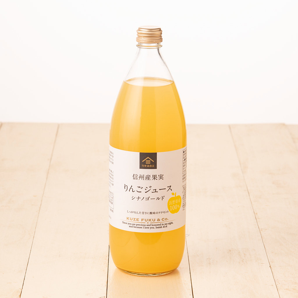 長野県生まれの人気品種「シナノゴールド」を 100%使用。ワイン用プレス機でやさしく搾ることで、渋みや苦みを抑え、果実そのものの甘みと香りを引き出した ストレートジュース です。搾りたてのようなフレッシュで、甘みと酸味のバランスがよく、柑橘を思わせる爽やかな風味が特長です。