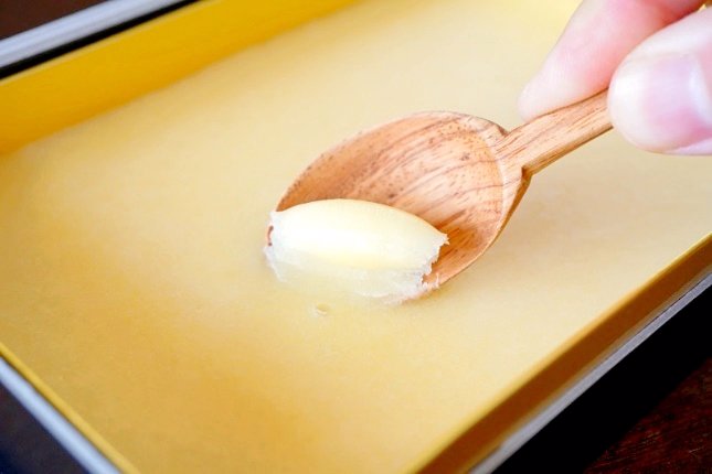 瓶ではなく、あえて背の低い箱に詰めているのは、まるでバターのようにスプーンやナイフですくって楽しんでいただきたいから。