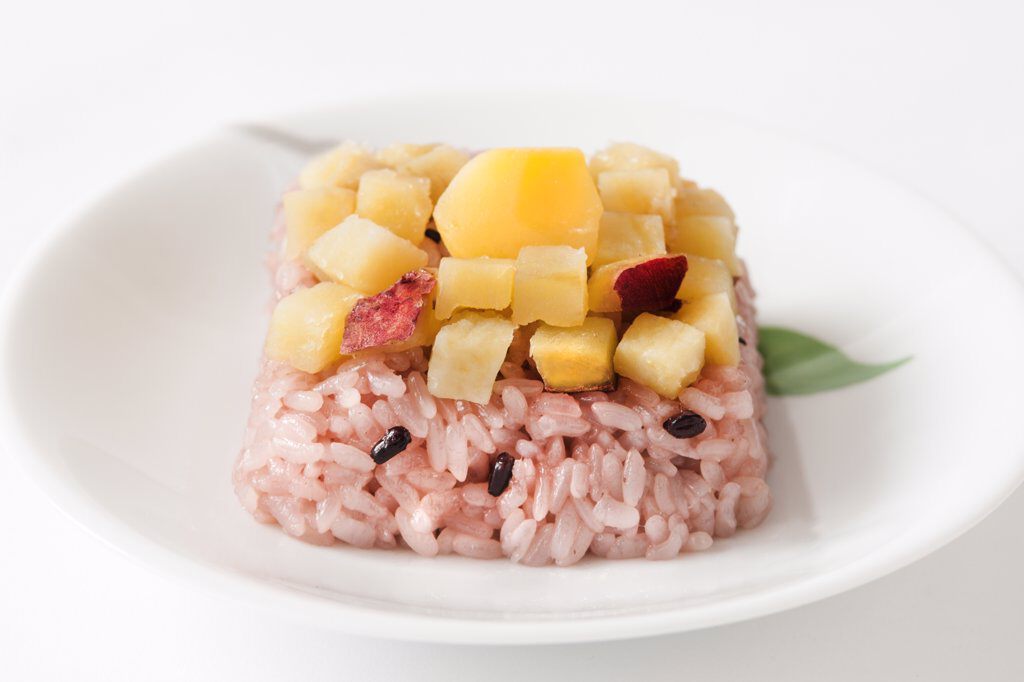 鹿児島県産「黒米」入りのおこわはほんのり塩味、