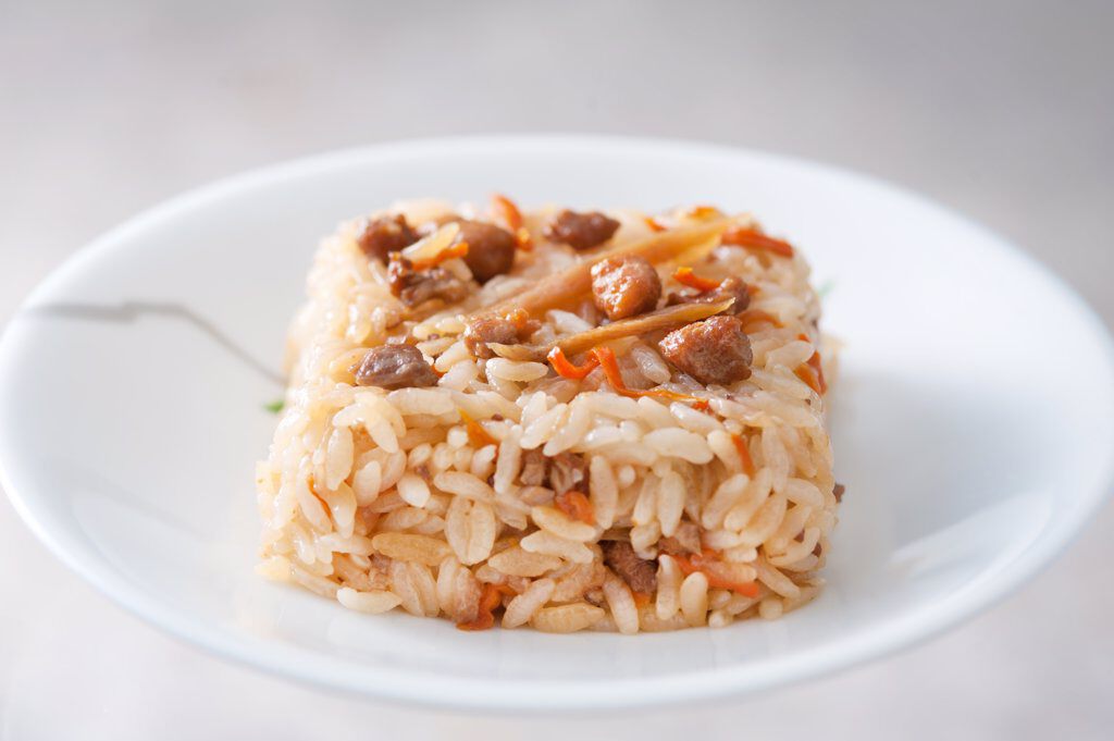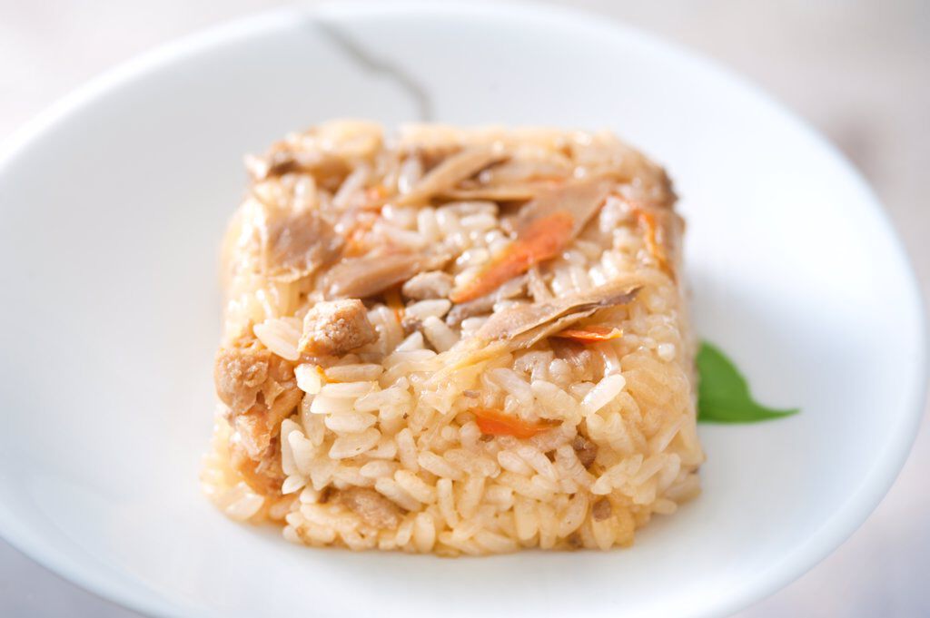 鶏肉と、ゴボウやにんじんを加えた具材たっぷりのおこわです。