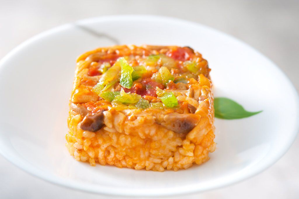 玄米にトマトソースを合わせるとリゾットのような味わいがあります。