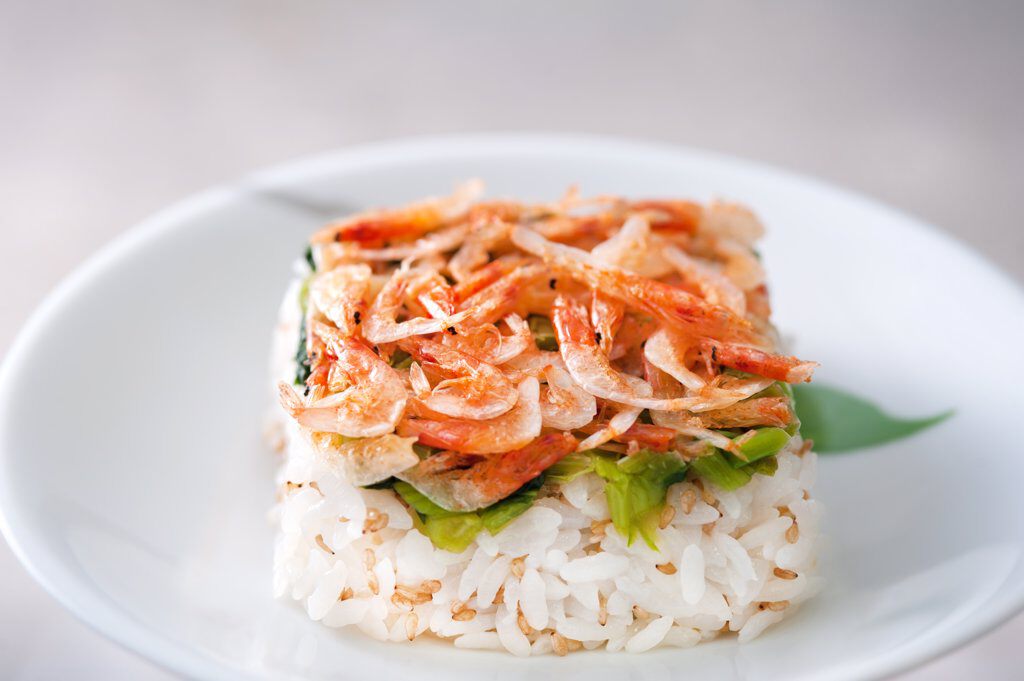塩漬けの高菜に香ばしい桜エビをふんだんにトッピングしました。