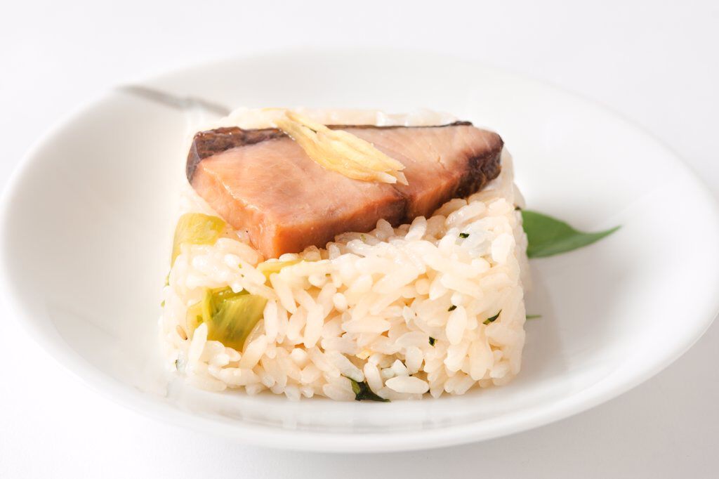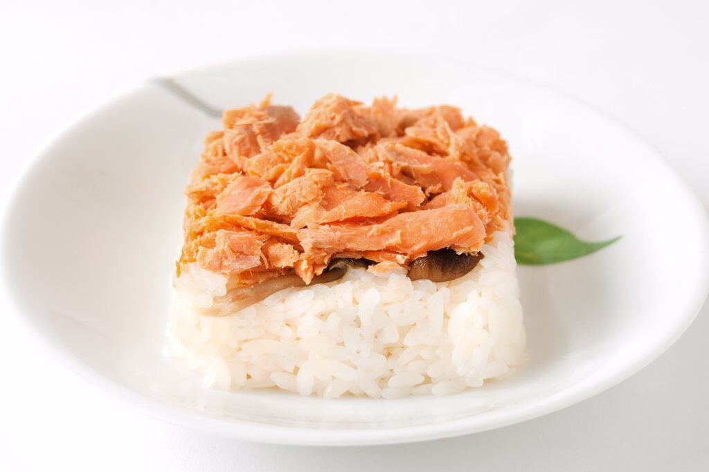 天然紅鮭のほぐし身としめじをトッピングした、素材の味が活きた味わい深いおこわです。