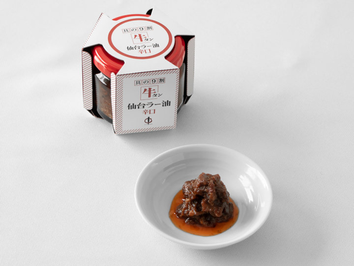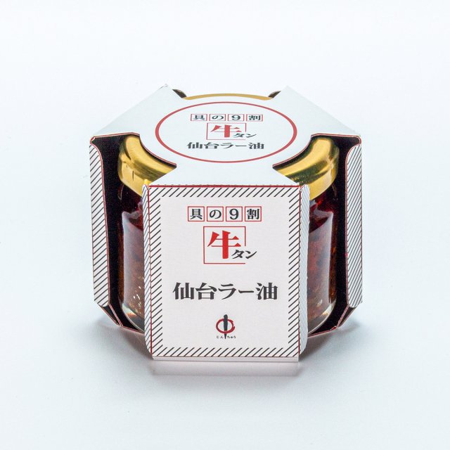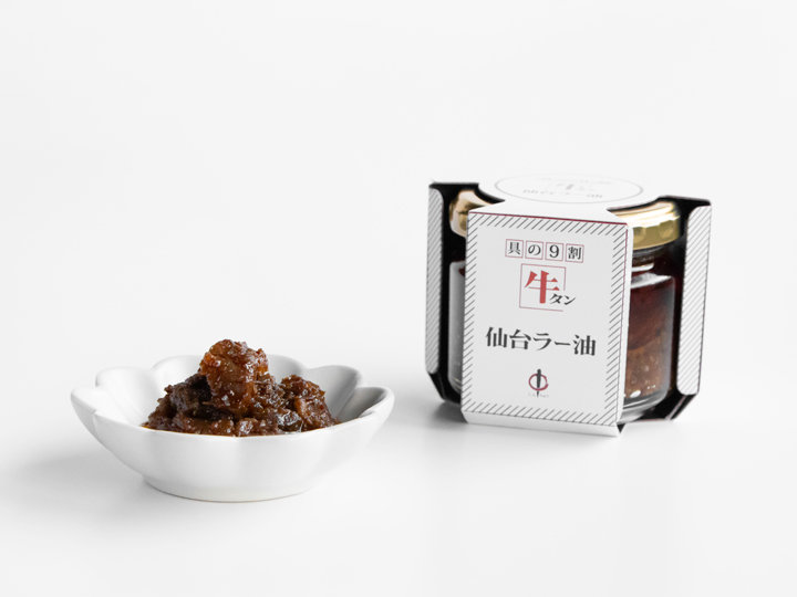 小さくカットした牛タンをじっくり甘辛く煮込み、自社で調合したゴマ油ベースの食油に唐辛子、にんにく、牛タンエキス等をしっかりとなじませた調味油と丁寧に合わせた仙台ラー油。