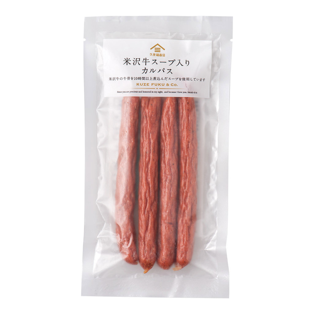 | 原材料名 | 豚肉(国産)、鶏肉(国産)、豚脂肪(国産)、糖類(水飴、砂糖)、還元水飴、香辛料、食塩、乳たん白、牛スープ(米沢牛)/カゼインNa、調味料(アミノ酸)、リン酸塩(Na)、pH調整剤、酸化防止剤(ビタミンC)、発色剤(亜硝酸Na)、(一部に乳成分・豚肉・鶏肉・牛肉を含む) |
