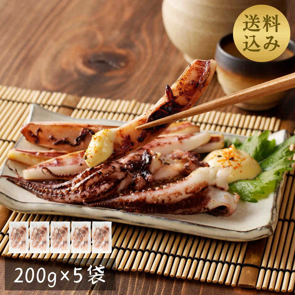 | 内容量 | スルメイカ一夜干し(カット済み、ゲソ入り)計1000g(200gx5袋) |