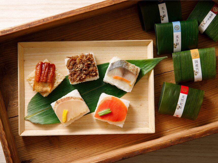 | 原材料 | 炙り鯖笹寿し(酢飯(国産米使用)、炙り漬け鯖、味付昆布、人参酢漬け、生姜甘酢漬け)、炙り鰤笹寿し(酢飯(国産米使用)、炙り漬け鰤、刻み柚子)、穴子笹寿し(穴子たれ入酢飯(国産米使用)、煮穴子、穴子のたれ)、牛しぐれ笹寿し(酢飯(国産米使用)、牛肉しぐれ煮、白ごま)、紅鮭笹寿し(酢飯(国産米使用)、紅鮭酢漬け、ほうれん草)/調味料(アミノ酸等)、着色料(カラメル)、増粘剤(加工デンプン)、甘味料(カンゾウ、ステビア、ソルビット)、酸味料、カイワレ抽出液、トレハロース、香料、(一部に乳成分・小麦・大豆・さば・ごま・さけ・牛肉を含む) |