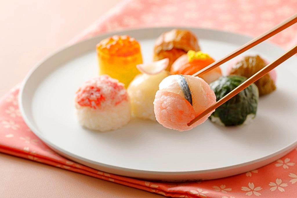 桜色のシャリやゆり根の花びらなど春の景色を彷彿とさせる色づかいで、一つ一つが愛らしい逸品です。
