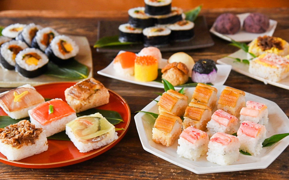 (サーモン・いくら錦糸・穴子・真鯛・甘えび・金時草各2個)
