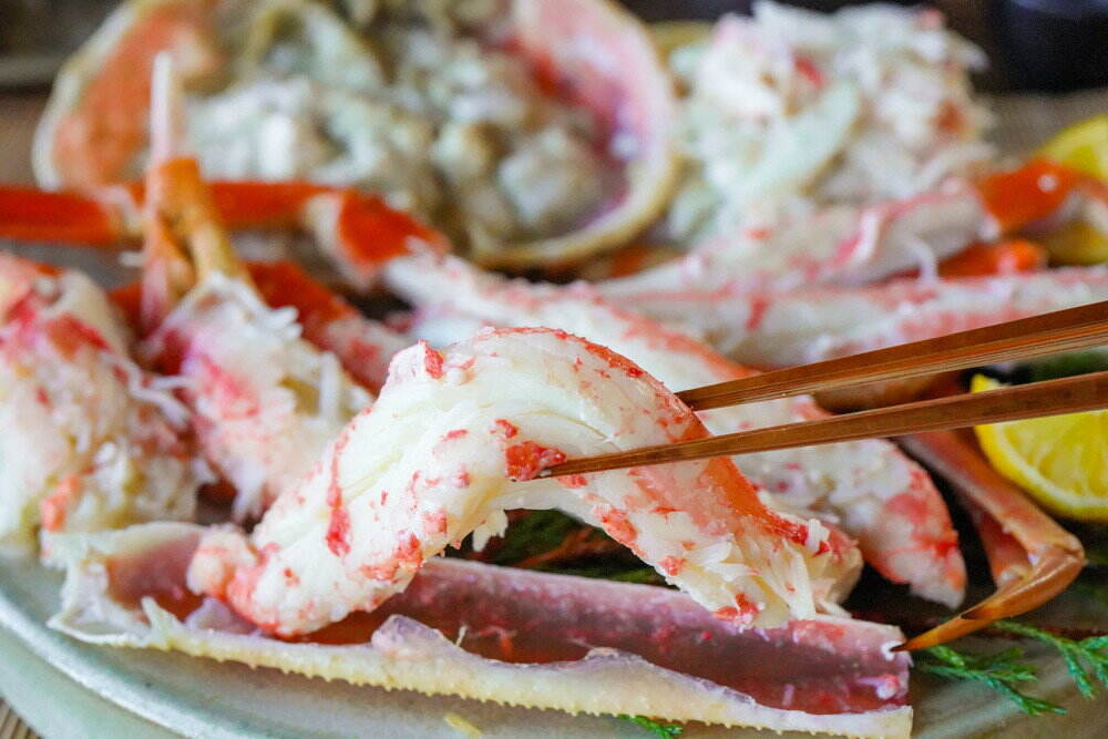 天然の蟹にとって贅沢過ぎるその海で、質の良い魚介類を食べて育ち、乱獲防止・資源保護の為の禁漁期間がより成長させ、甘みと濃厚な旨味を持つ松葉蟹になるのです。