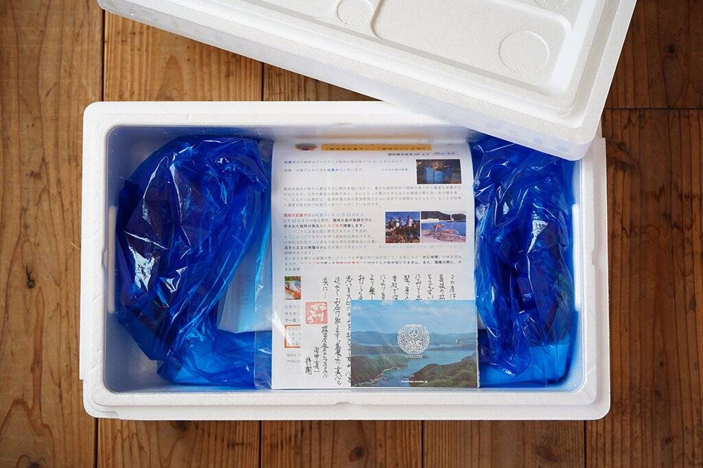 ※一部の写真に脚が1本無いものがありますが、実際に届くものはタグ付きで親爪より4本まであるセイタイ規格になります。最後の足が無くとも、重量ベースでの選別となりますので食べ応えは劣りません。