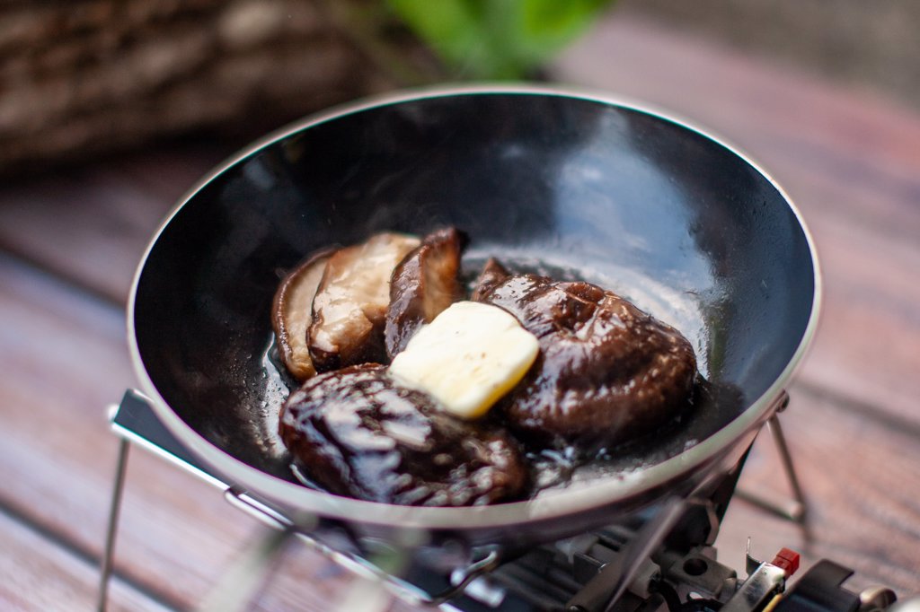 水戻しした干し椎茸は、生椎茸と同じように幅広い料理に使えます。干すことで旨味が凝縮されているため、ステーキ椎茸にすれば、生椎茸とはひと味違う深い風味をお楽しみいただけます。軽くて保存性も抜群なので、キャンプやアウトドアにもぴったり。