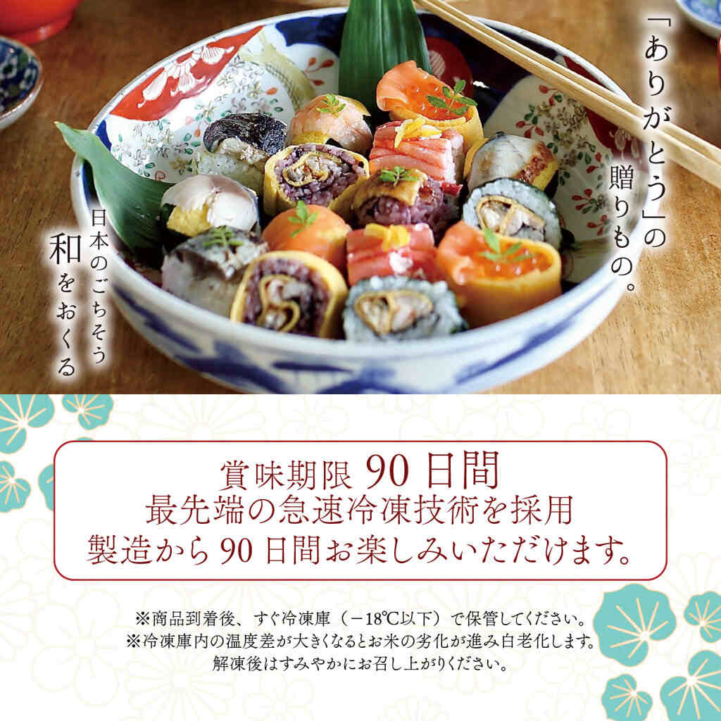 「紅ずわいがに棒寿司」や「梅酢炙り鯖棒寿司」などの色鮮やかなお寿司も詰め合わせ、和と華を感じられる、集いの場ぴったりの逸品です。