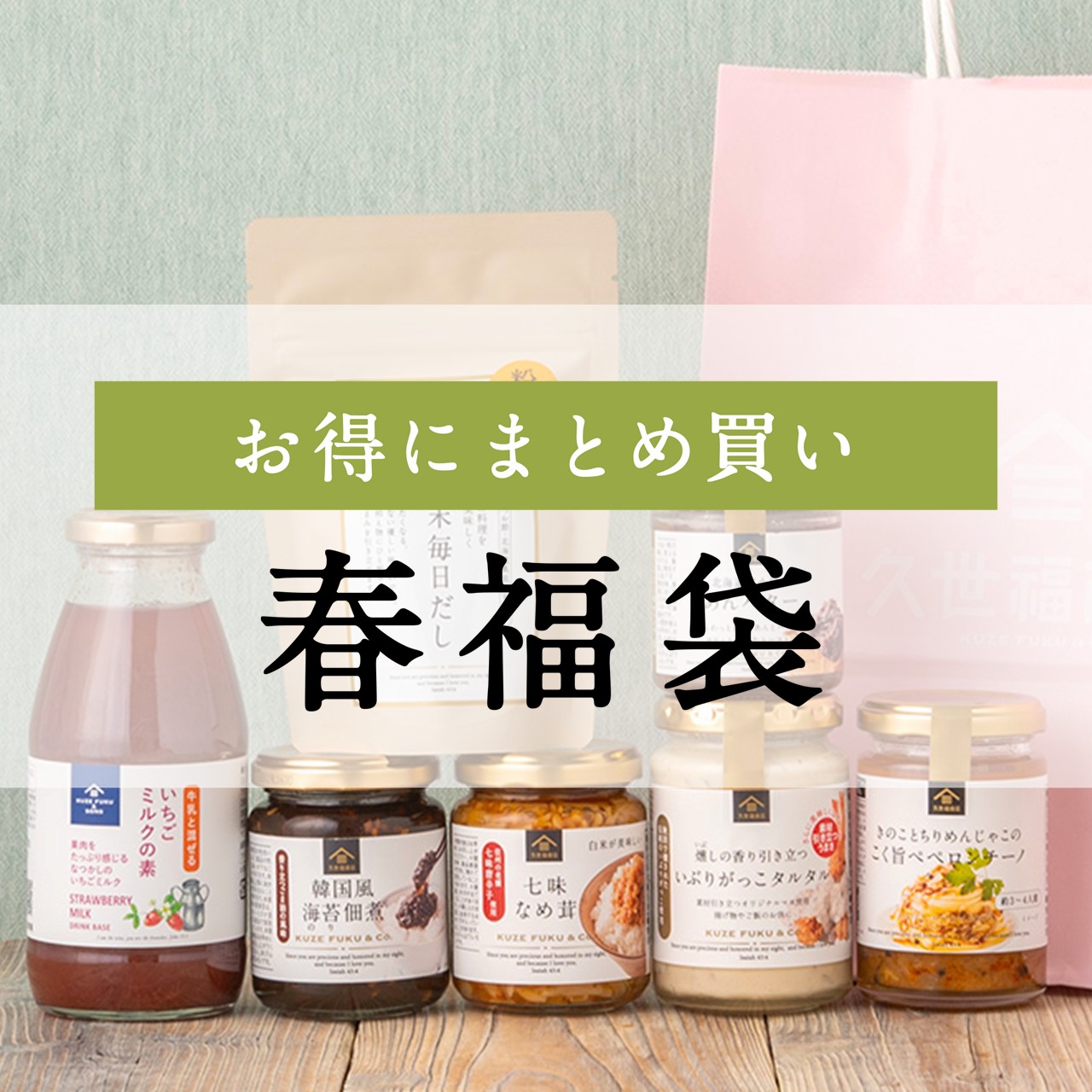 炊きたてごはんにぴったりのごはんのお供や、こだわりのだしなど、久世福商店の人気商品を贅沢に詰め込んだ福袋をご用意しました。