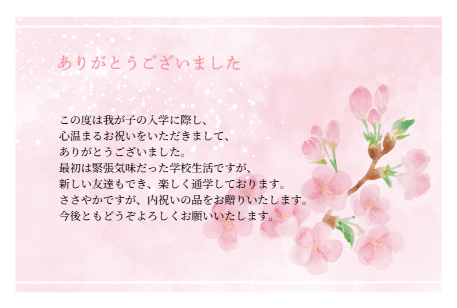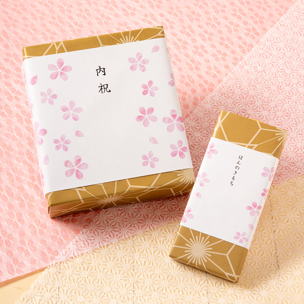 桜をかたどった季節の掛け紙や、写真や文章を入れられるメッセージカードを無料でお付けできます。