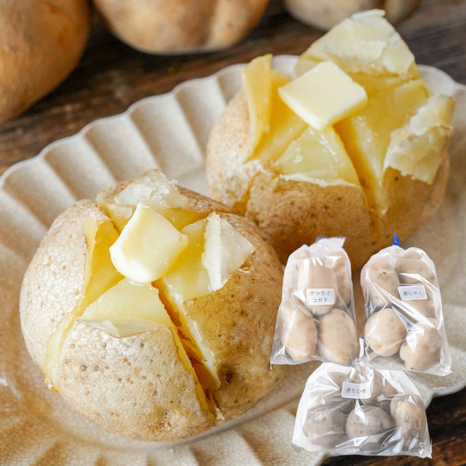 ホッカイコガネよりもしっとりとした食感、そして普通のじゃがいもとは異なる、豊かな風味が感じられて、とても美味しい、、、!