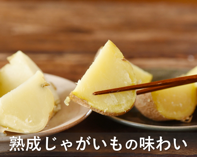 「熟成じゃがいも」は、収穫されたじゃがいもを低温で貯蔵し、熟成させることで、デンプンが分解されて甘みが高められています。