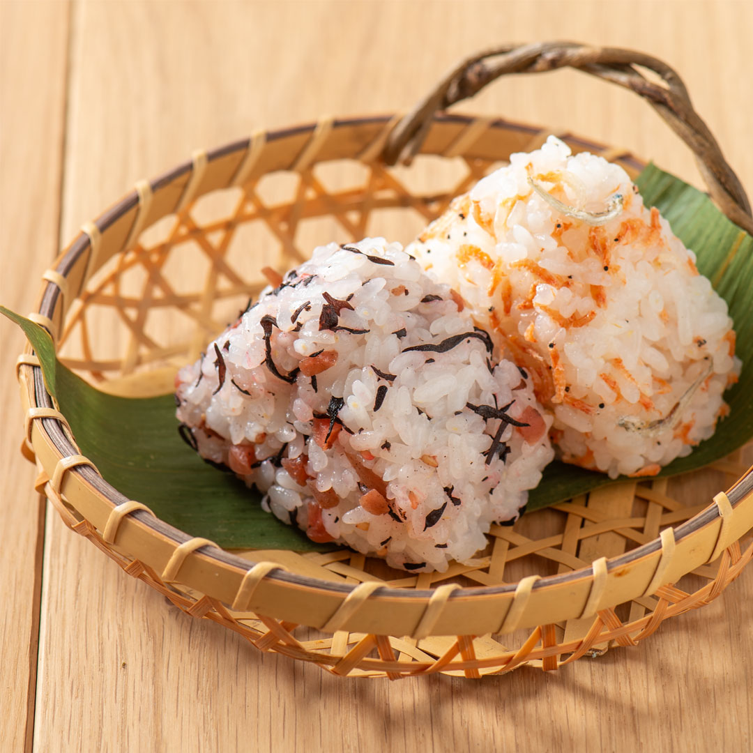 しっとりやわらかな梅ひじきや、海老とちりめんの旨みを生かしたふりかけを混ぜるだけ。