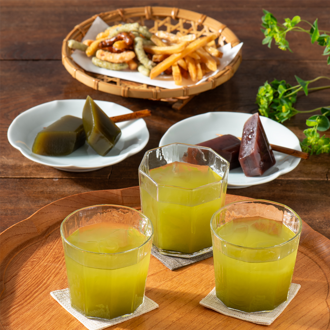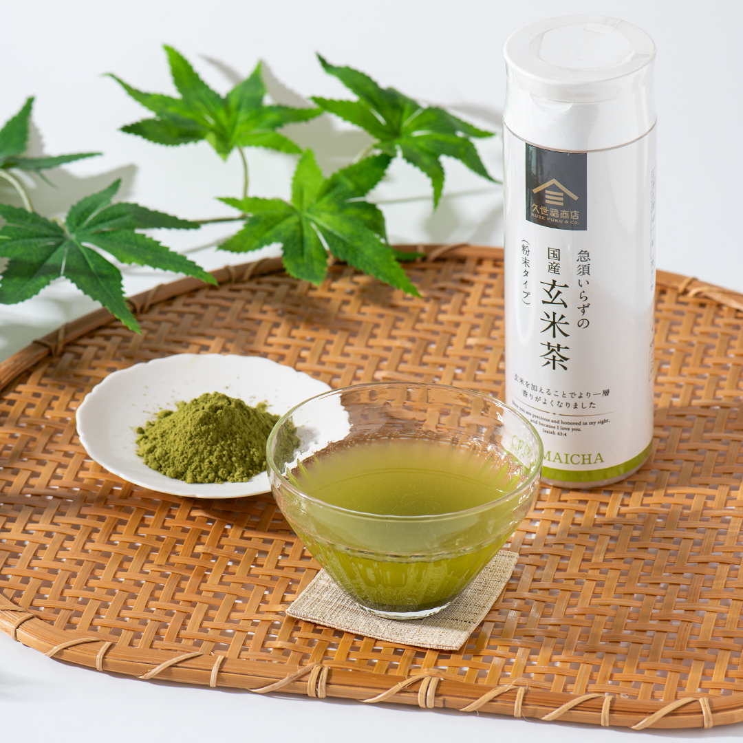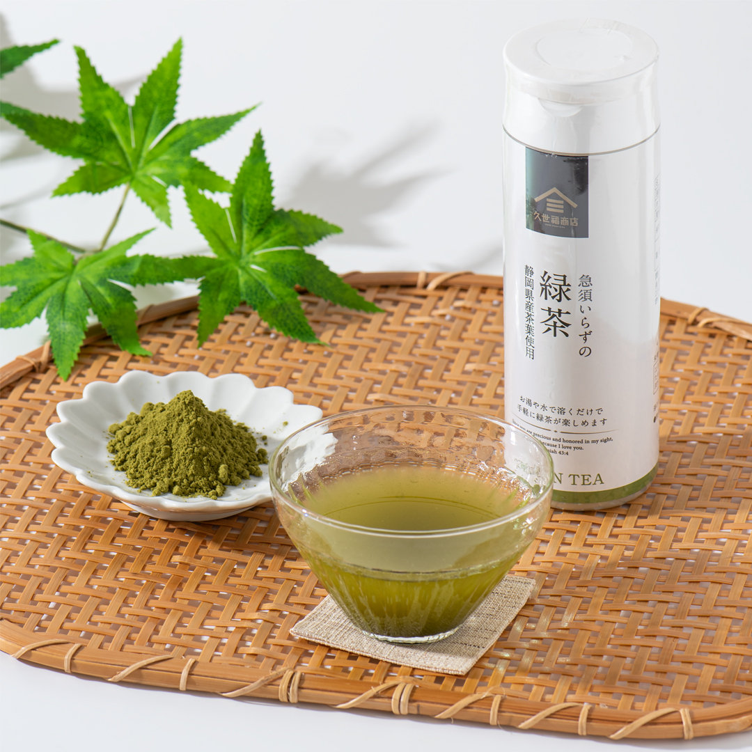 お湯でも水でも溶ける、急須いらずの粉末茶。手軽に淹れられて片付けも簡単。何杯でも楽しみたくなるお茶の香りです。