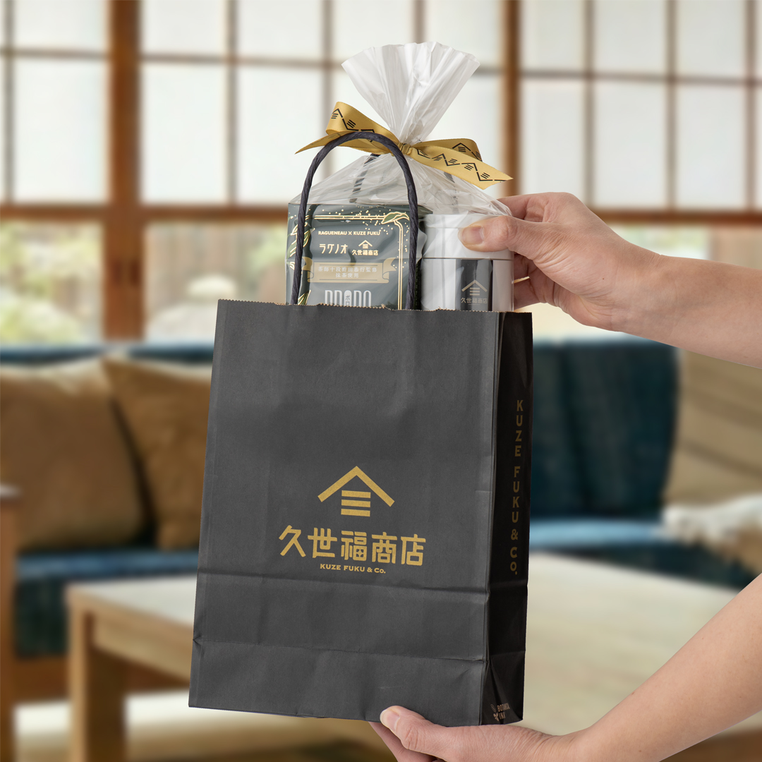 お世話になった方や数年ぶりに合う友人には、必ずネットで注文して私の自宅まで届けて貰い直接渡しています。紙袋もサービスで頂きますので袋に入れて渡すのですが、袋を見るなり中身も分からないのにみんな大喜びします。久世福さんのブランドイメージは最高です。北海道の田舎町在中なのでネットが頼りで、札幌迄行くと大丸百貨店にテナントで有りますので自身のは大丸さんで好きなものを単品で購入しております。
