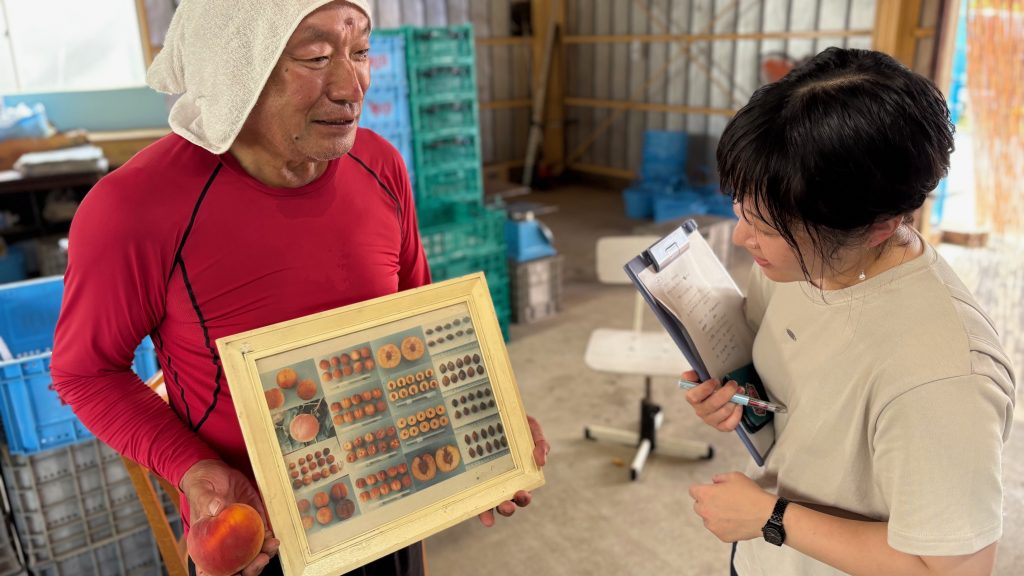 そう話すのは中村豊彦さん。父・中村渡さんがみつけたワッサーをつくる、須坂市の農家さんです。歯ごたえが固めで、桃の甘さとネクタリンの酸味がちょうどよくかけ合わさったワッサーは、県内外にファンの方がたくさんいます。中村さんの奥様がワッサーを切って出してくださいました。