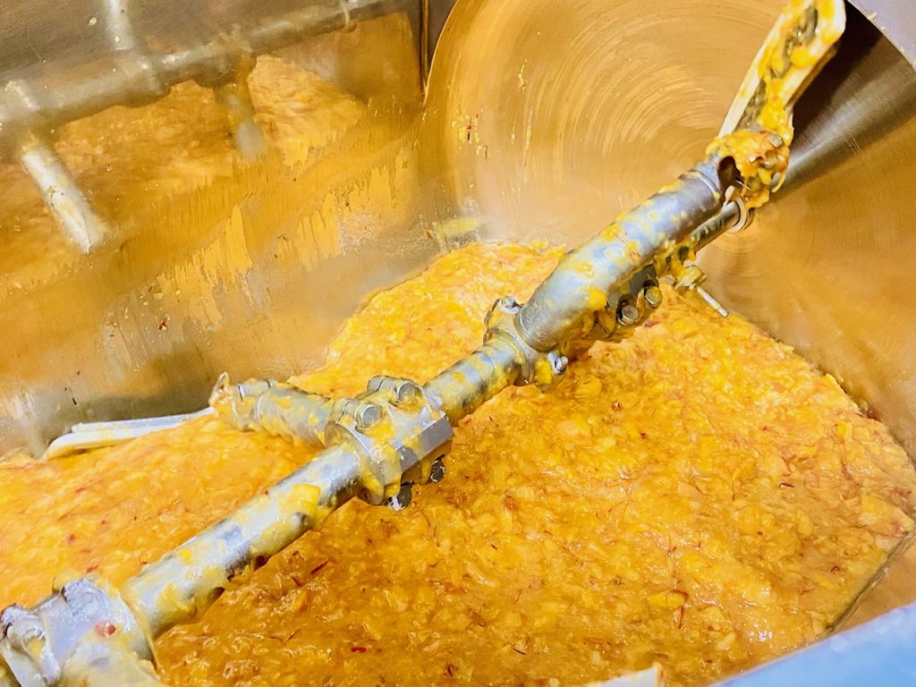 種を取り除いて、カット。200キロ以上のワッサーを仕入れさせていただき、手作業でカットしました。