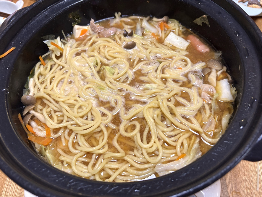 そして、〆はラーメンです!バター&コーンを入れても美味しそうですが、母の好みを尊重してシンプルに麺だけを入れました。
