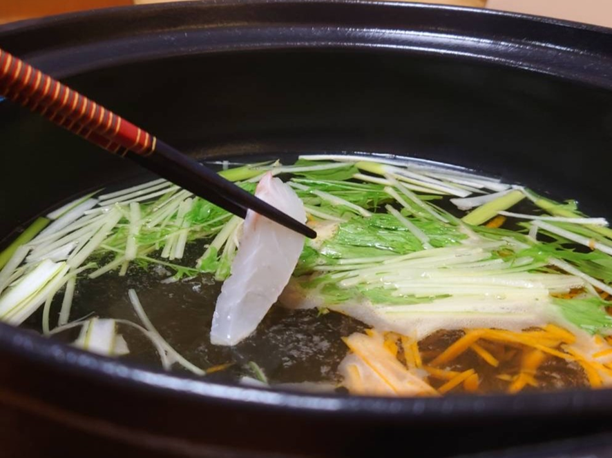 こちらもしゃぶしゃぶ!やさしい鯛の風味がお出汁にマッチして旨みあふれるしゃぶしゃぶでした。
