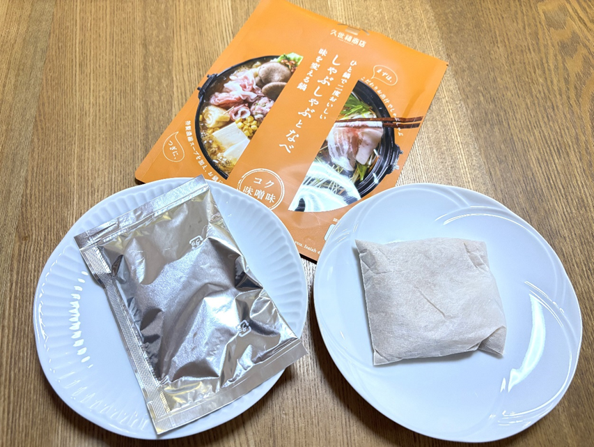 開けてみると中はこのような感じです。右がだしのパックで左が味噌味ペーストです。