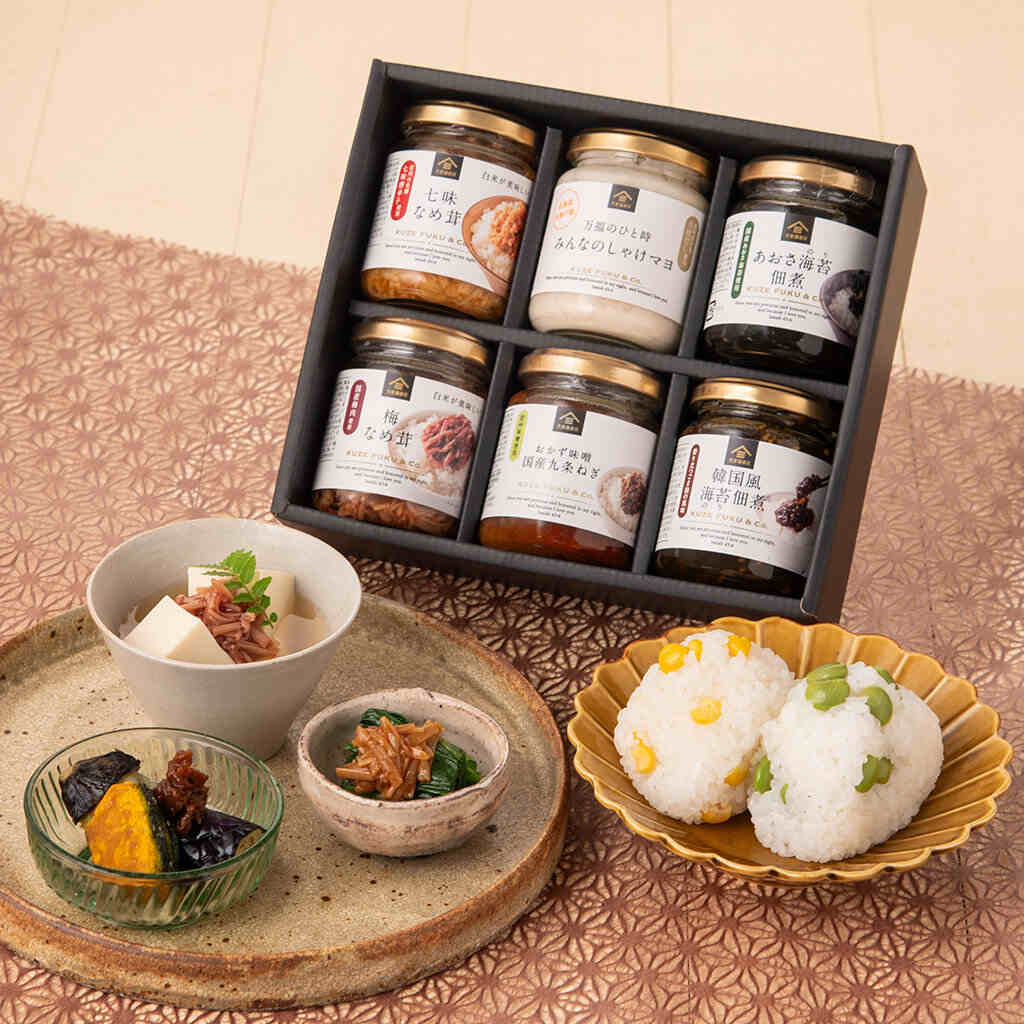 久世福商店で人気No.1のギフト!メディアでも度々紹介される「万能だし」や「しゃけしゃけめんたい」、さらに旬の野菜をおいしく楽しめる「ドレッシング」が入った、イチオシのギフトセットです。