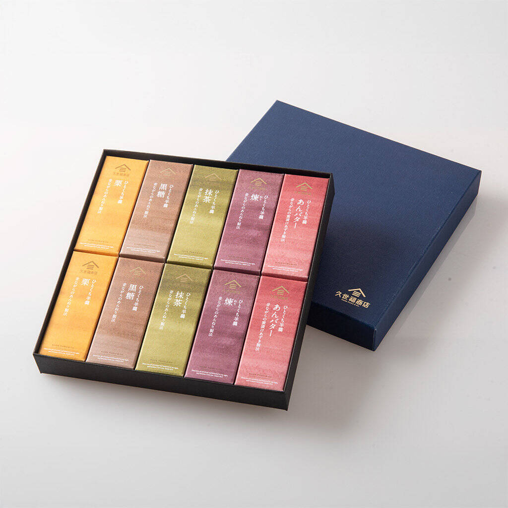 あんバター・練・抹茶・黒糖・栗の味をひと箱に詰め込んだ、贅沢な詰め合わせセット。甘いひとときで、贈る方の笑顔を引き出すギフトです。