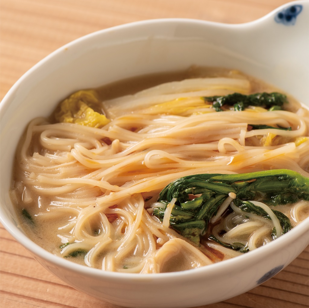 コクのあるあっさりとした鶏がらベースに、長崎県五島列島で作られた昔ながらの塩を加えました。