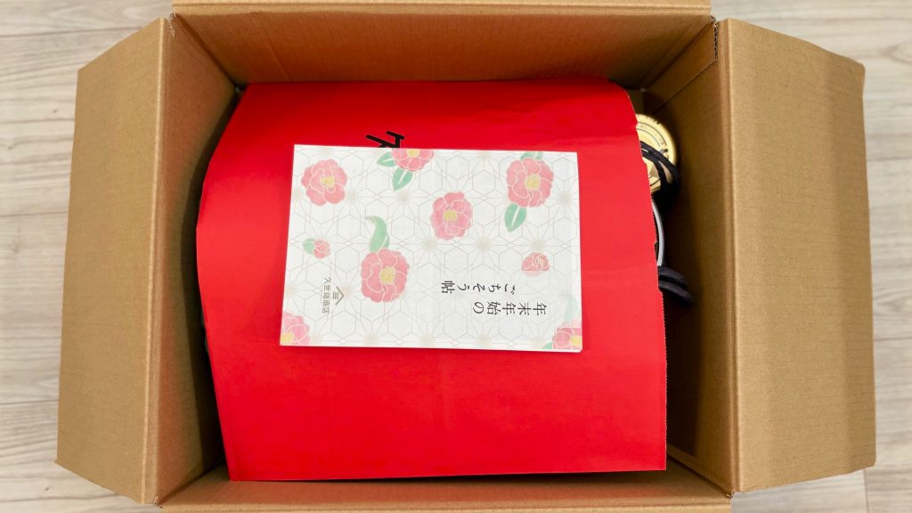 筆者は久世福商店オンライン限定福袋の注文は2回目。1回目はお中元として近しい親族に贈っており、自分のために届いた福袋を開封するのは初めてです。ネット販売のため箱で届きますよ。今回選んだのは<竹>。5,969円(税込)相当のところお値段5,380円(税込)。送料込みで、加えて後から使えるオンラインクーポン500円分がもらえる商品。実質1000円以上お得!