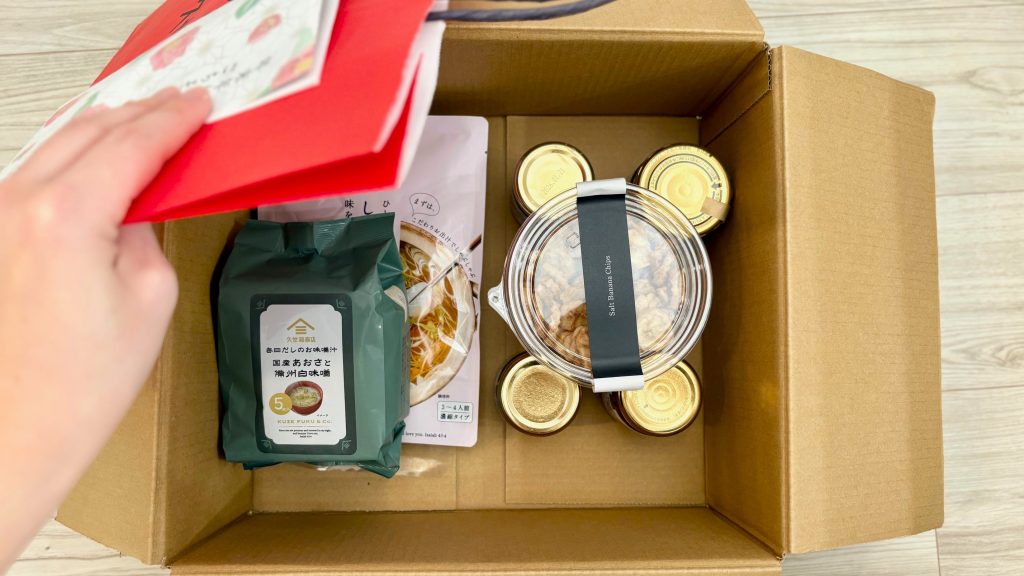 久世福商店の看板商品「風味豊かな万能だし」が入っていました。筆者、普段は時短重視の粉末万能だし派。しかしパックだしの良いところは、透き通ったきれいなだしがとれること。年末年始ぐらい、しっかり煮出した透き通ったおだしでお吸い物やお雑煮を作ってみようと思いました。