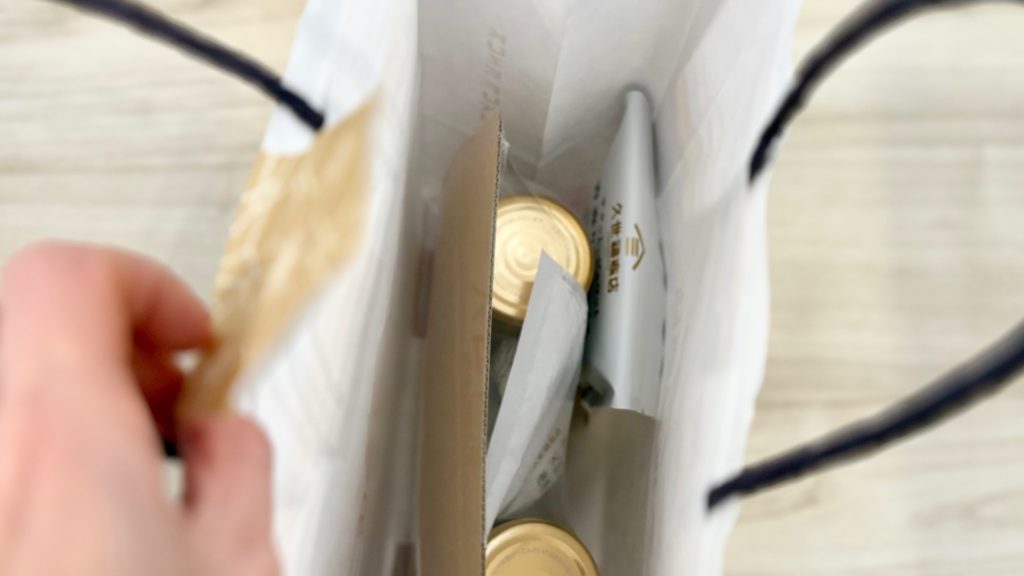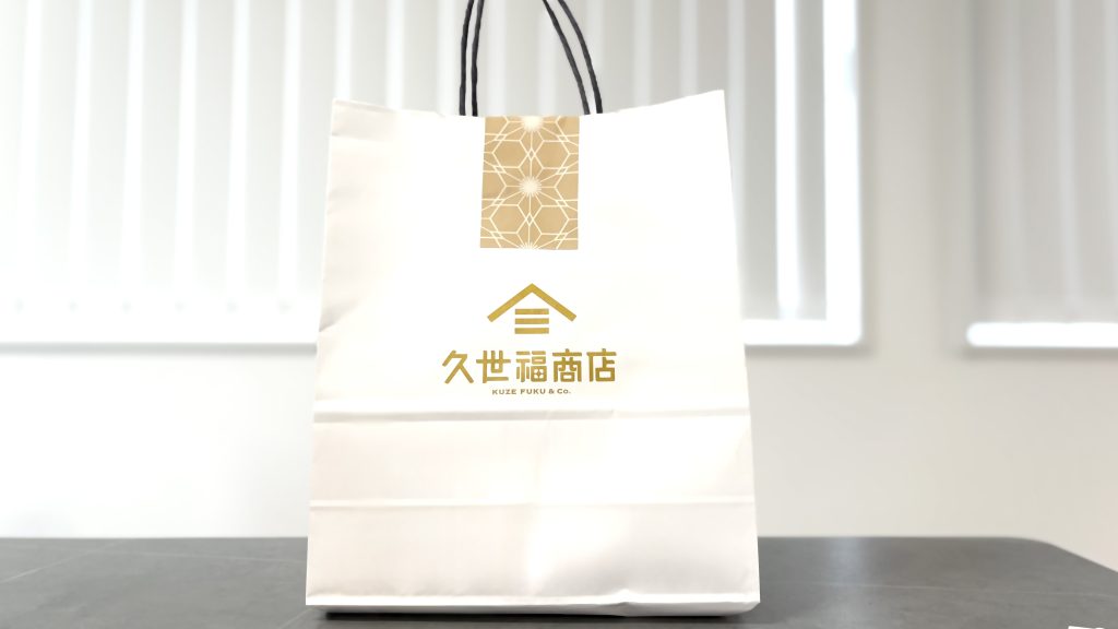 まずは袋のデザインからチェック。白地に金ロゴをあしらった紙袋は、久世福商店史上初の試みです。