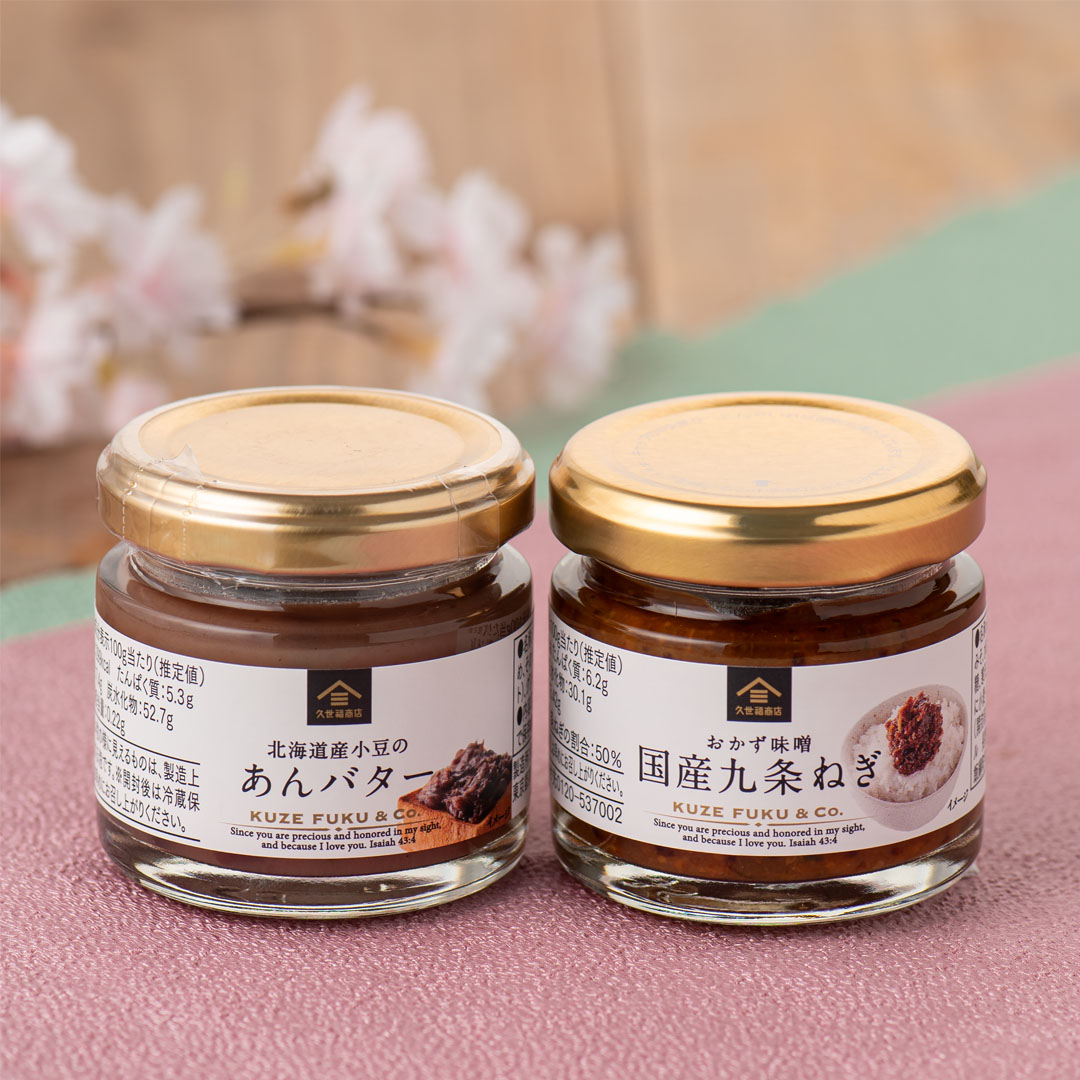 上記期間中、税込3,000円以上お買い上げの方に、「北海道小豆のあんバター」または「おかず味噌 国産九条ねぎ」のお試しサイズをプレゼント。